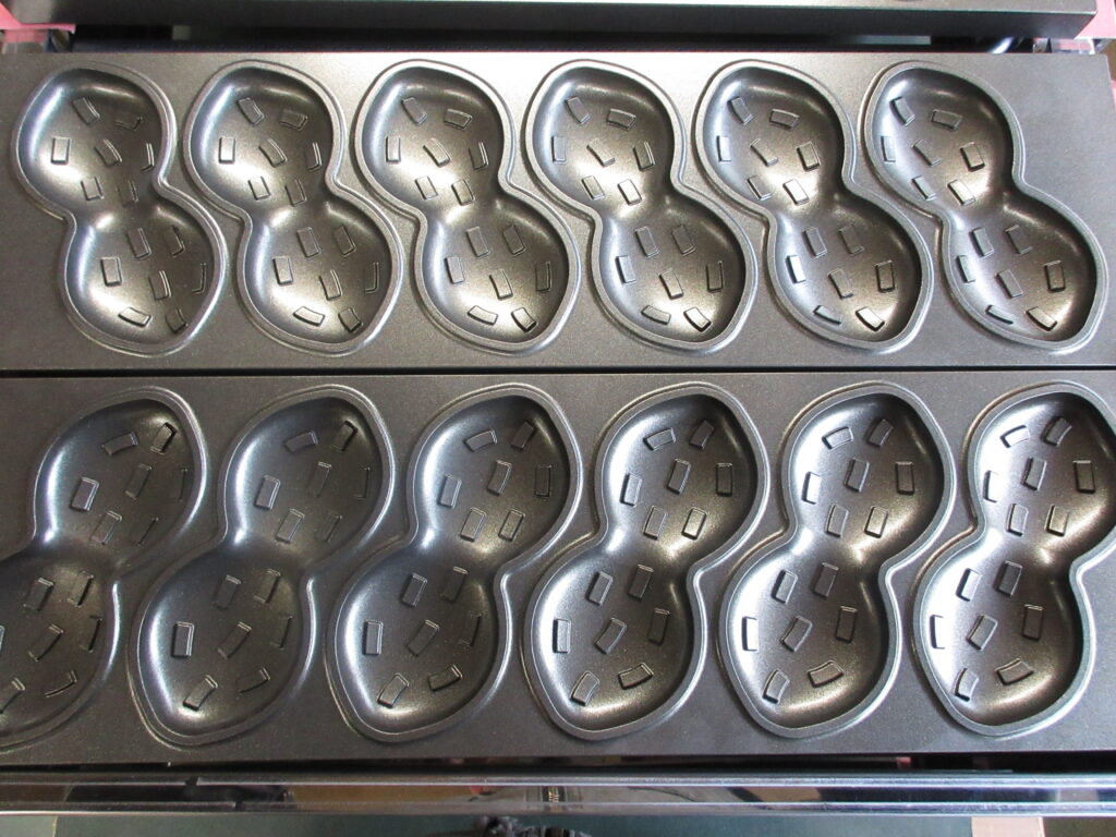 ピーナッツの型の登場です! 広島県呉市のPEAceNUTS Cafe様からのご依頼で作成させていただきました。 「落花生PEAceNUTS」を使用したお菓子などを提供されており、キッチンカーでの販売を目的として型とガス台のセットをご購入いただきました。 食べ応えのあるピーナッツに皆様喜ばれている事と思います。ありがとうございました。